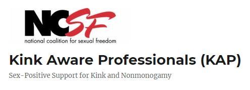 The Kink And Poly Aware Professionals Directory (KAP) is a service offered by NCSF dedicated to providing the community with a listing of psychotherapeutic, medical, legal and other professionals who have stated that they are knowledgeable about and sensitive to diverse expressions of sexuality.